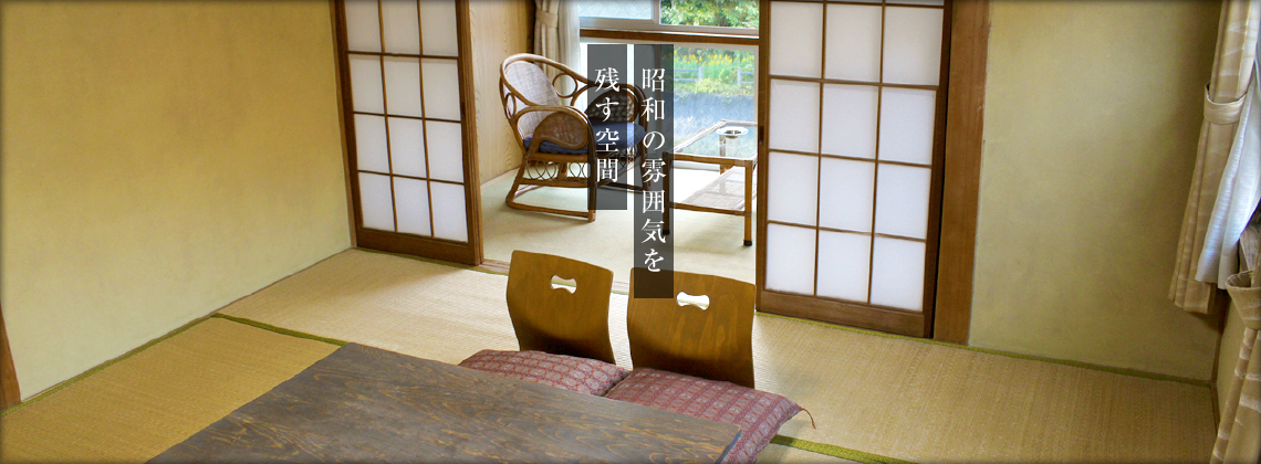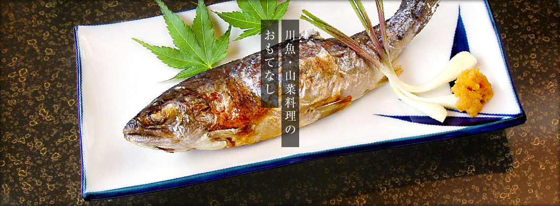 三種類の良質な源泉と昭和の雰囲気を残す空間で、川魚・山菜料理のおもてなし。ここでは時がゆったりとすぎていきます。